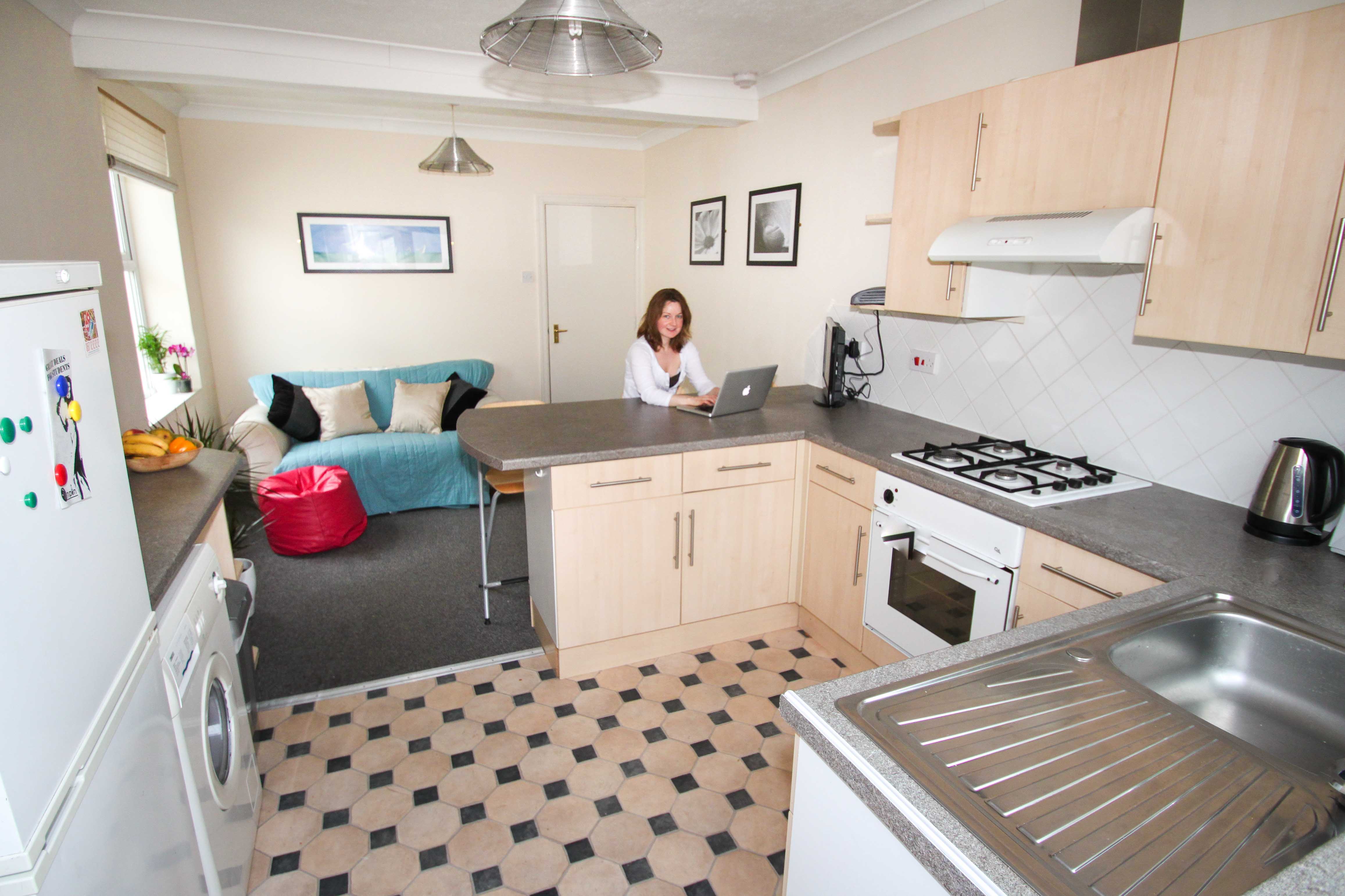 Towards the rear of the property there is a large open plan lounge and kitchen. It is a great space for you to relax and enjoy with your friends. The large breakfast bar makes for a very sociable space and you can sit and catch up on the days/nights events while enjoying your favourite tipple or knocking together a feast. The main hallway is spacious and bright, with ample hanging and storage space. The bathroom boasts a powerful shower and a full-sized bath to stretch out in and relax after a long day ‘at the office’ or maybe even at the beach! This 3 bedroom student flat is arranged over two floors, so it feels the size of a typical 3 bed house, airy and light. The bedrooms all have double beds, high ceilings and tasteful decor.